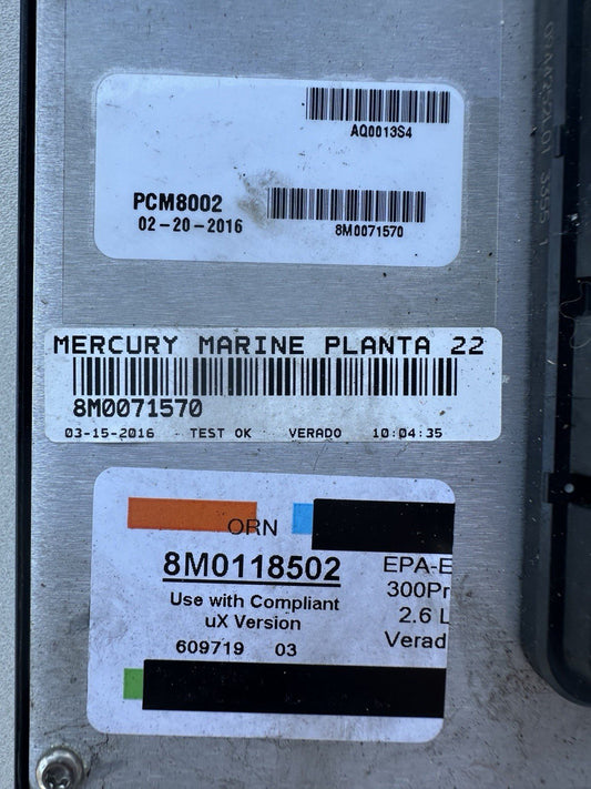 2016 Mercury Verado 300 HP Outboard Computer PCM8002 ECU 8M0118502 8M0071570 PCM