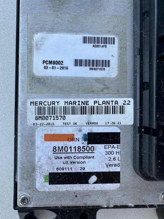2016 Mercury Verado 300 HP Outboard Computer PCM8002 ECU 8M0118502 8M0071570 PCM
